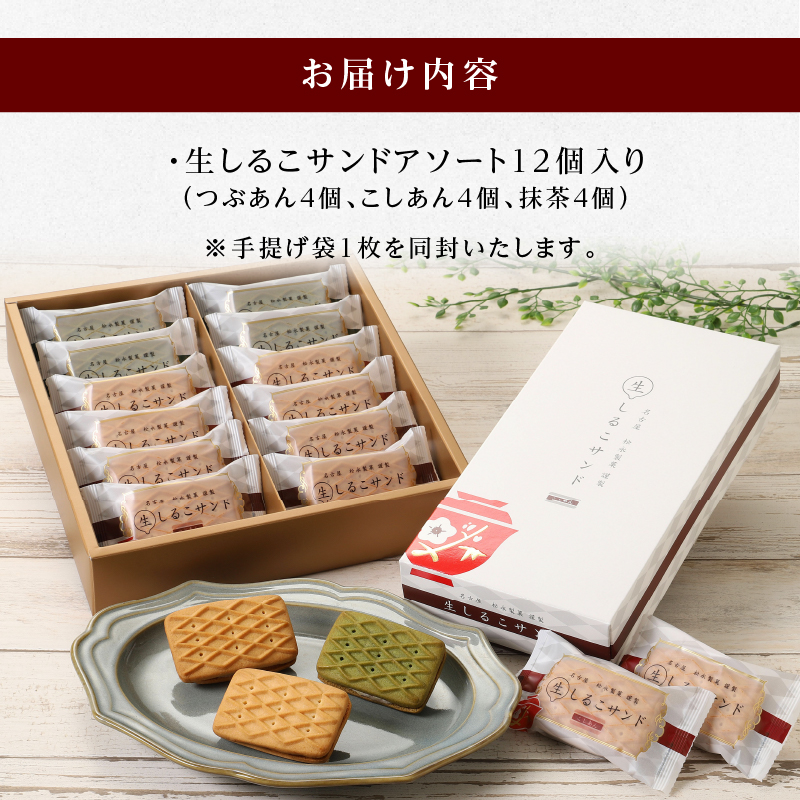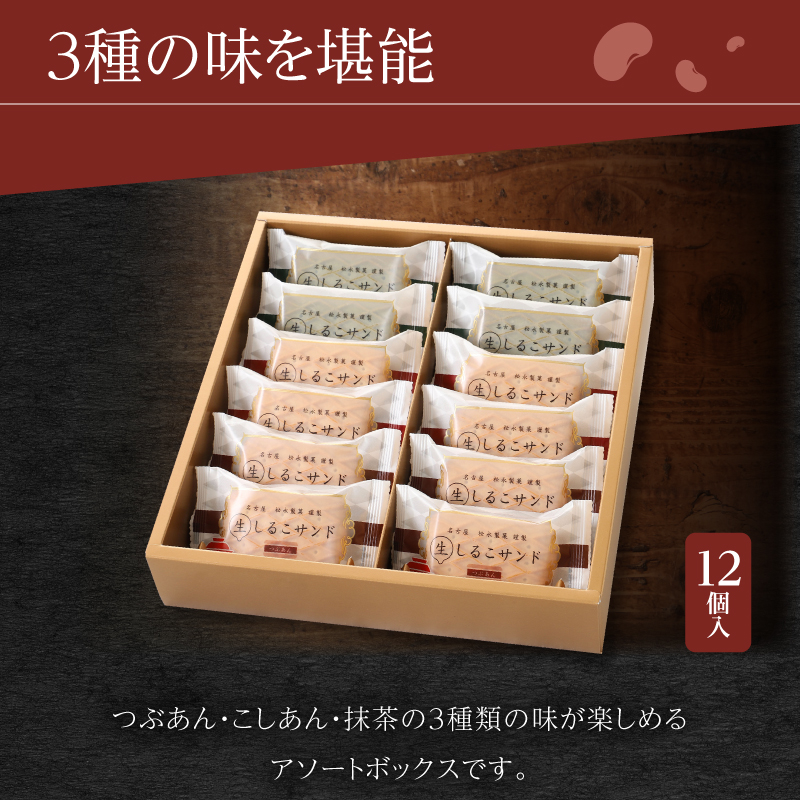 生しるこサンド12個入(つぶ・こし・抹茶各4個):1箱