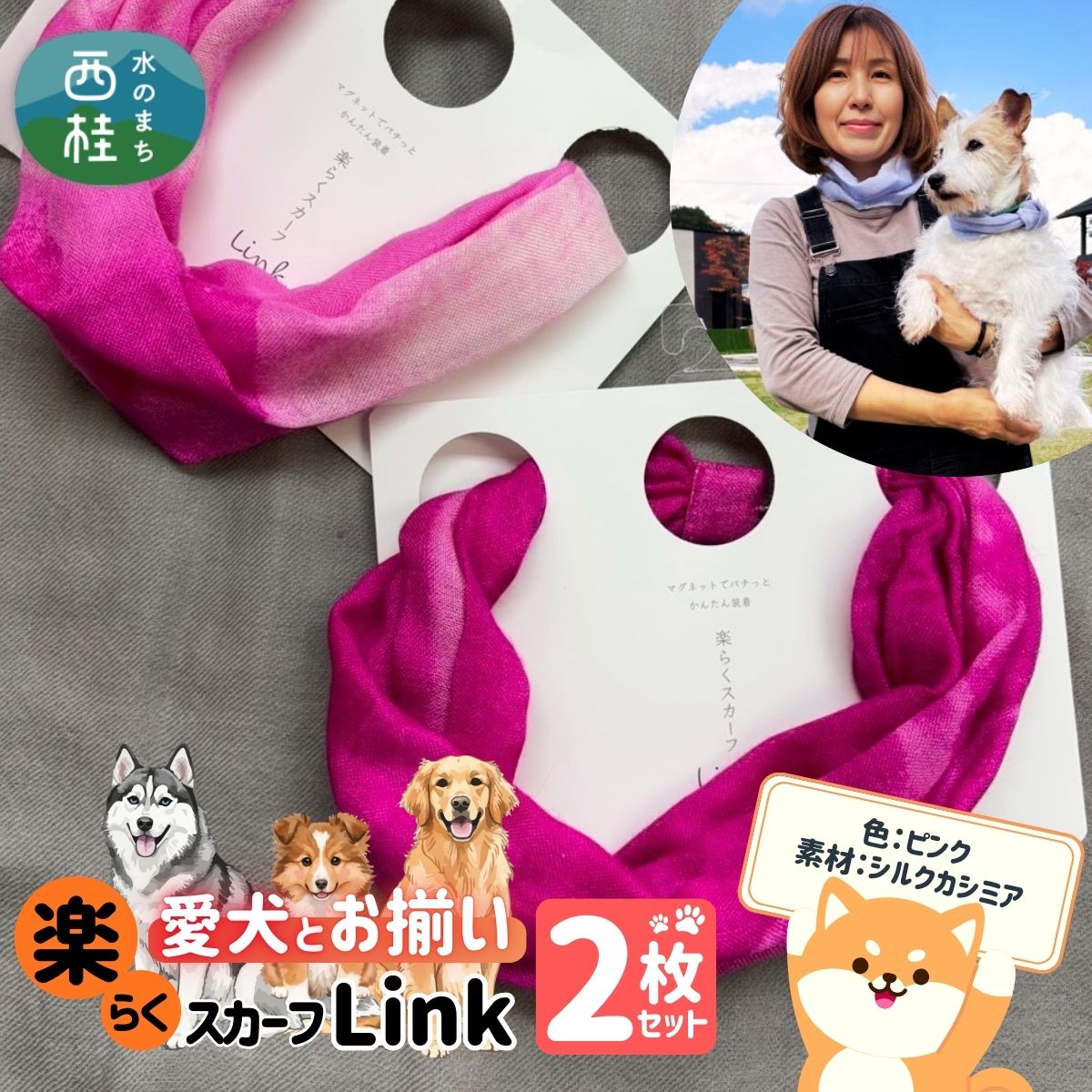 色:ピンク・素材:シルクカシミア。愛犬とお揃いで着用できるセットです。