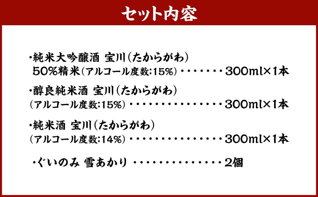 ・純米大吟醸酒 宝川(たからがわ)50%精米300ml×1本