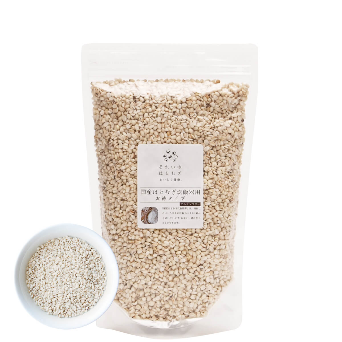 お米1合〜2合に対し「国産はとむぎ炊飯器用」約20g目安に、お米と一緒に水洗いをした後、炊飯器で炊いてください。水加減は炊飯器の目盛りに合わせて入れた後、更に約20gに対して約30cc(大さじ2)程の水を加えると、美味しいはとむぎごはんが炊けます。