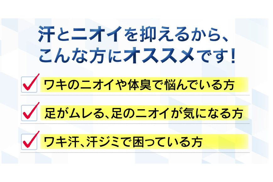 ワキのニオイや体臭で悩んでいる方、ワキ汗や汗ジミで困っている方などにオススメです。