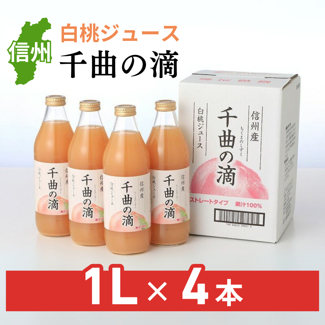 信州産 白桃ジュース 果汁100%「千曲の滴」(1L×4本)