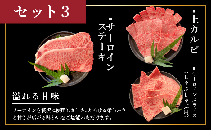 【賞味期限】焼肉用上カルビ・サーロインステーキ・しゃぶしゃぶ用サーロイン:製造日から1年