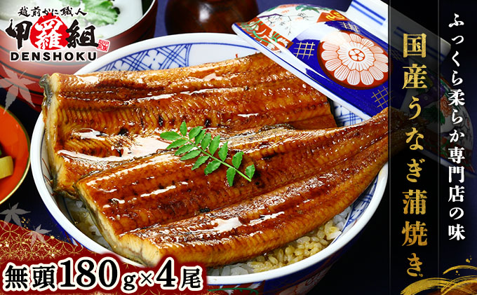国産 うなぎ蒲焼き(無頭/背開き真空包装)1尾180g 前後 ×4尾