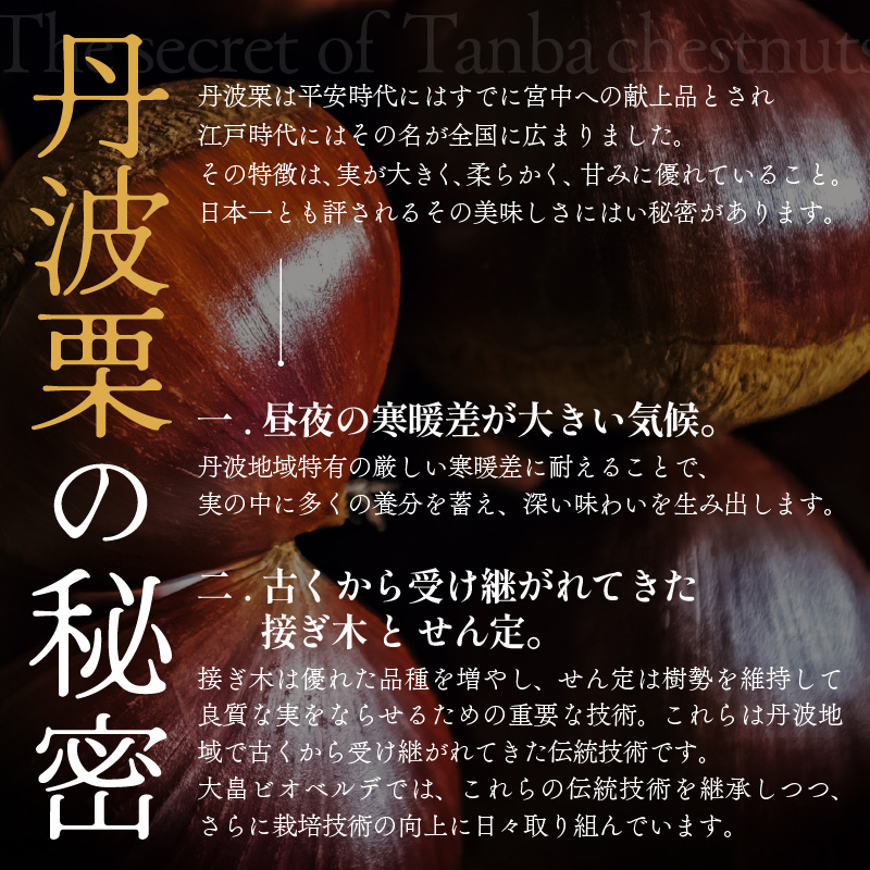 大畠ビオベルデの丹波栗は、地域への愛情と、伝統への敬意、そして未来への希望が詰まった逸品です。