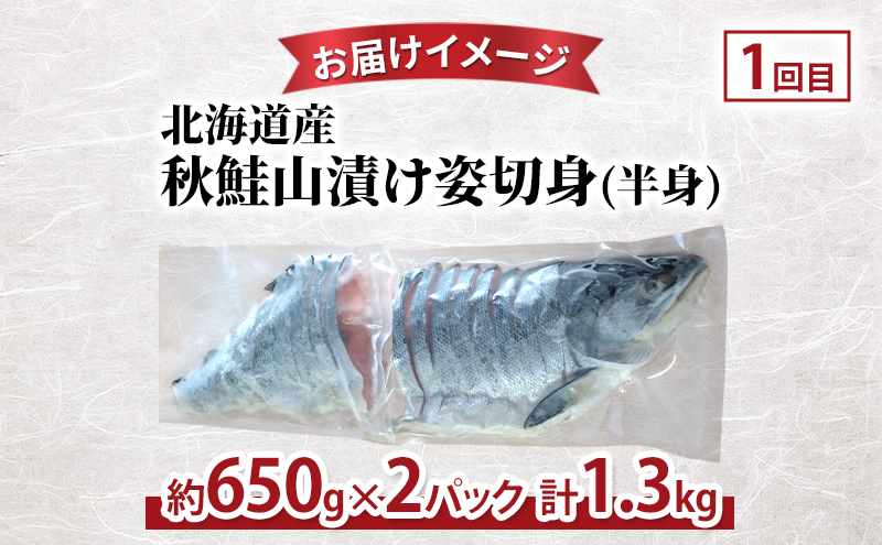 北海道産秋鮭山漬け姿切身(半身)1.3kg(約650g×2パック)