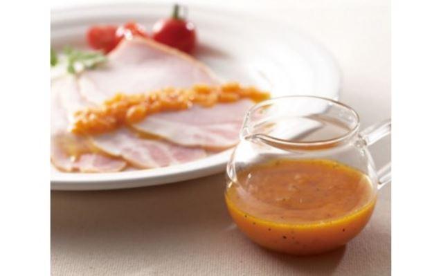 人参・セロリ・タマネギ・にんにくをメインにしたドレッシングは、ハムに付けると抜群!