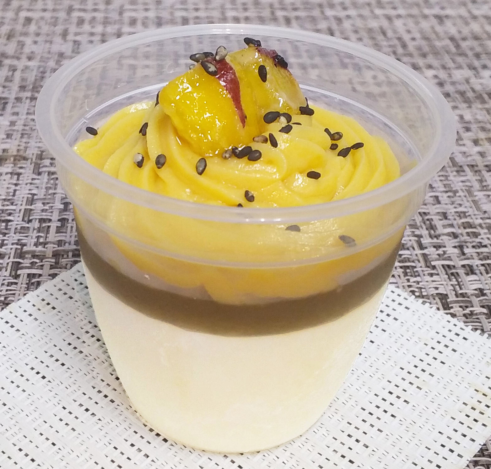 ◆ベースのミルクぷりんと、種子島産黒糖のジュレ、