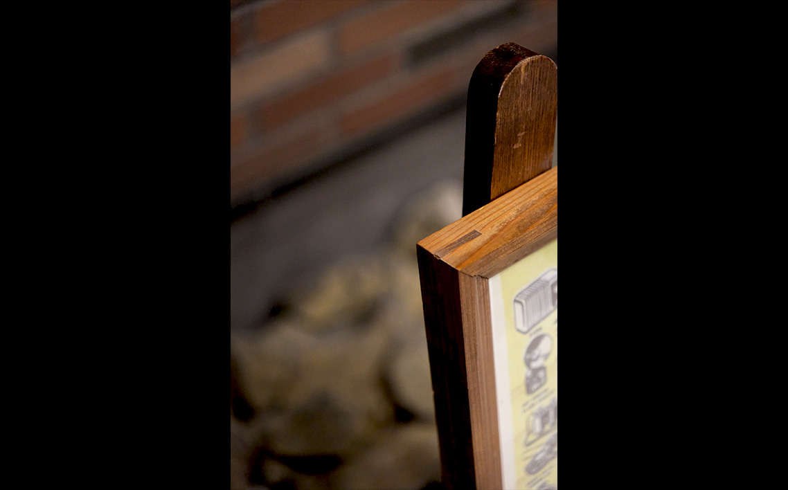 ※額縁の裏側に修理の際に分かるよう、【木の種類・塗装の種類・制作日】を記載し、スタンプが押してあります。