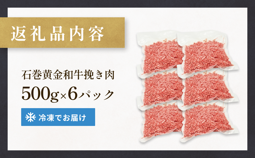石巻黄金和牛挽き肉(500g×6P) 【原材料】 石巻黄金和牛:宮城県産