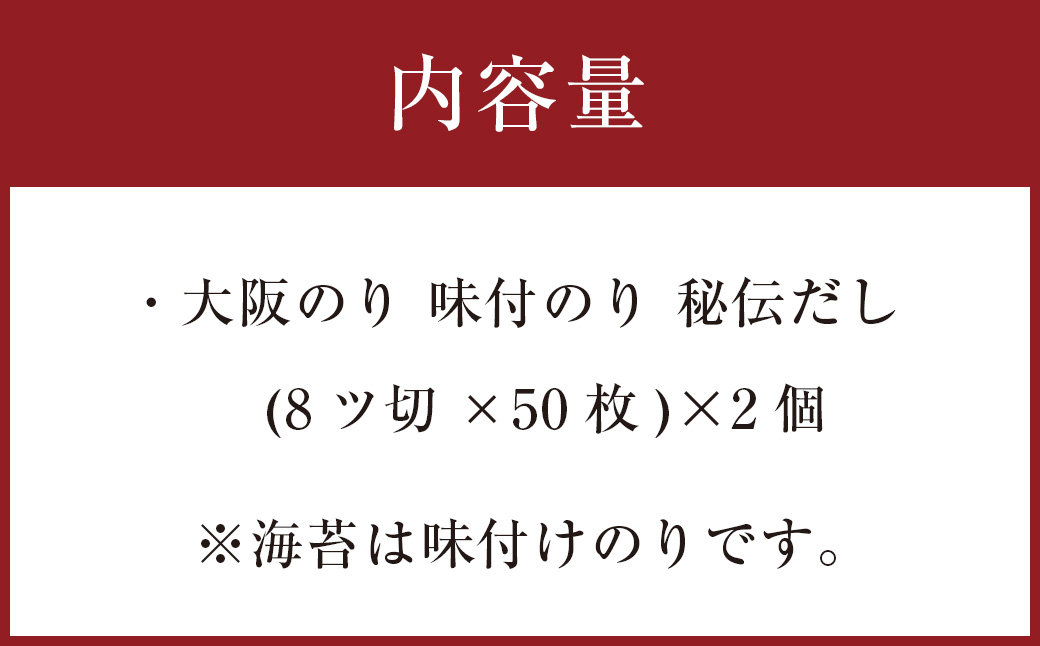 希少価値の高い海苔に純国産原料を使用し、大阪ならではの甘辛いダシで味付け。