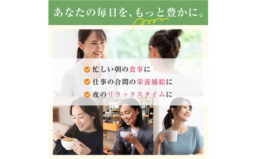 スイートコーンの甘味が溶け込んだコク深い味わいと、とろりとした食感が特徴的で、ダイエット中の1食置き換えはもちろん、朝食を摂るのが苦手な方にもおすすめです。