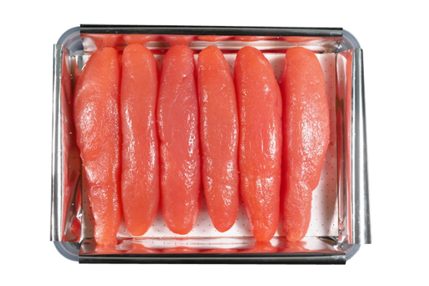 使用するたらこは、粒がしっかりとしており、丸みのある美しい形と程よい弾力を持つものだけを厳選。