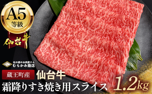 きめ細やかな霜降りが美しい、A5ランクの仙台牛すき焼き用霜降りスライス。