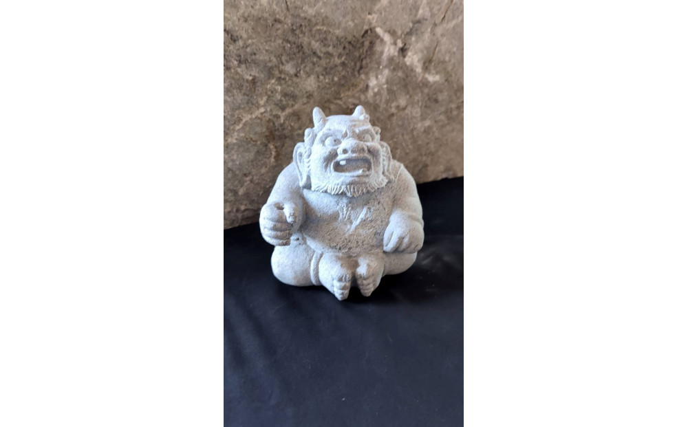 高松市が誇る庵治石細目で作られた鬼の置物です。少しとぼけたような陽気な表情と丸みをおびた体つきが特徴。
