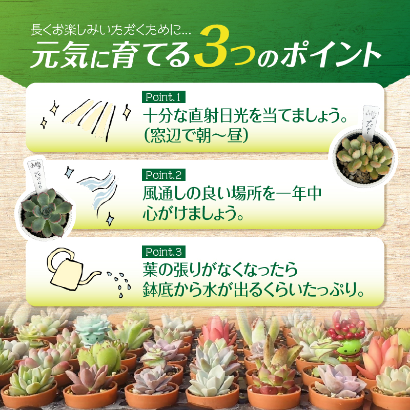 「簡単な管理方法」をおつけしますので、安心して多肉植物ライフをお楽しみください。