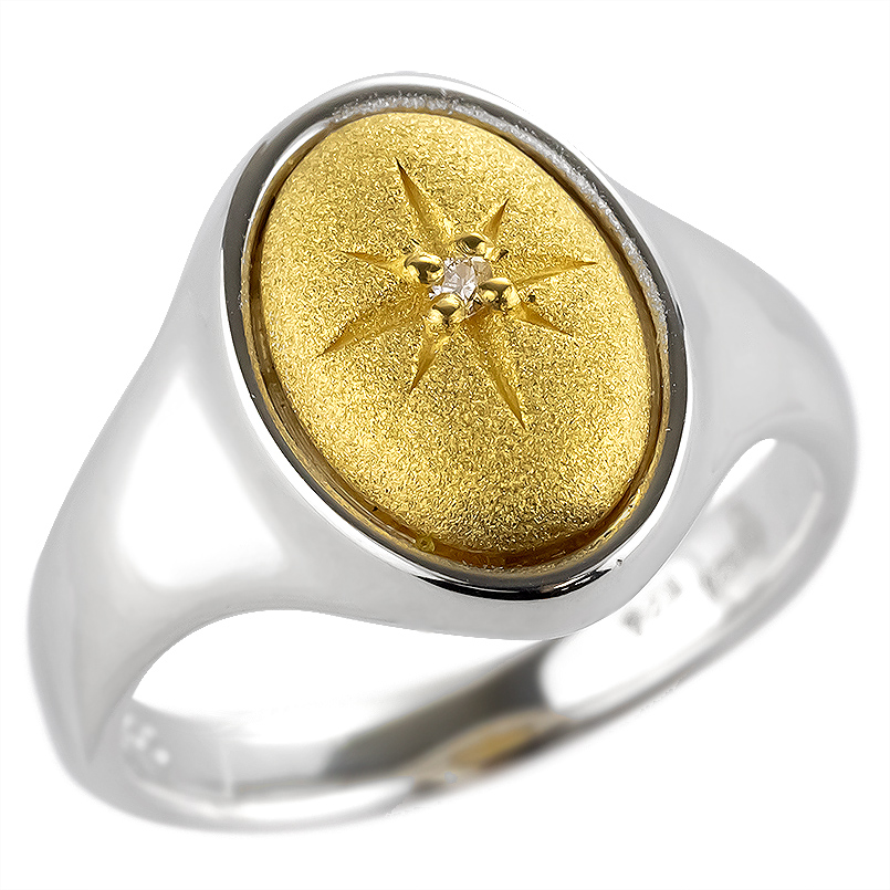 丸みのあるカボションタイプの純金がどこかユーモラスなシグネットリング