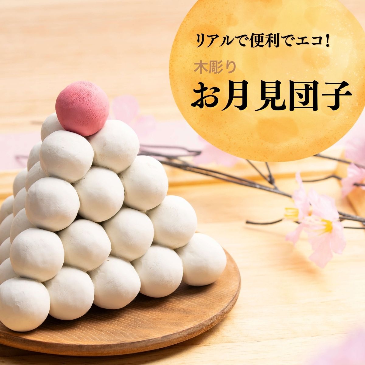 造型にはとてもこだわり、手作りのお団子が一つとして同じ形のものがないことに倣い『木彫りお月見団子(積み団子)』の団子は一つ一つが異なる形状となるよう仕上げました。