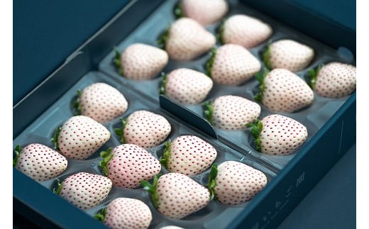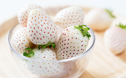 一般的な赤いいちごに比べて酸味が少なくほのかに香る甘い匂い、甘く上品な後味、果肉も白く粒だけが赤いのも特徴です。