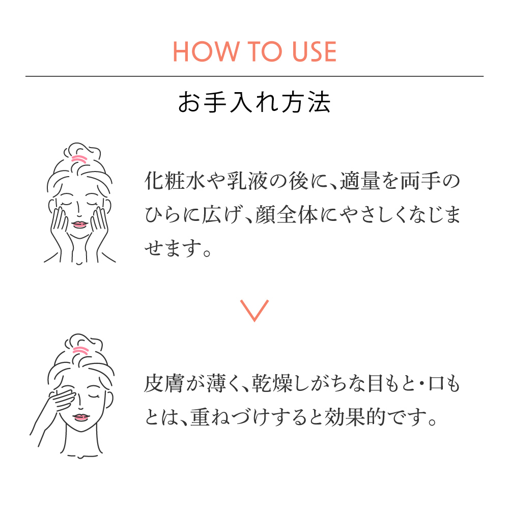 化粧水や乳液の後に、付属のスパチュラで適量(パール3粒分)手に取り、馴染ませるように塗布します。