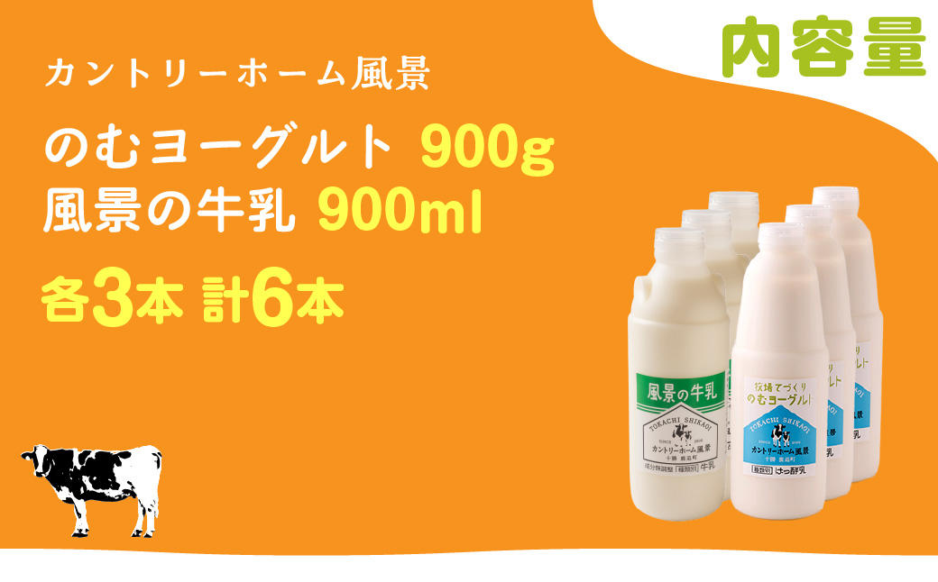 のむヨーグルト900g、牛乳900ml:各3本(計6本)