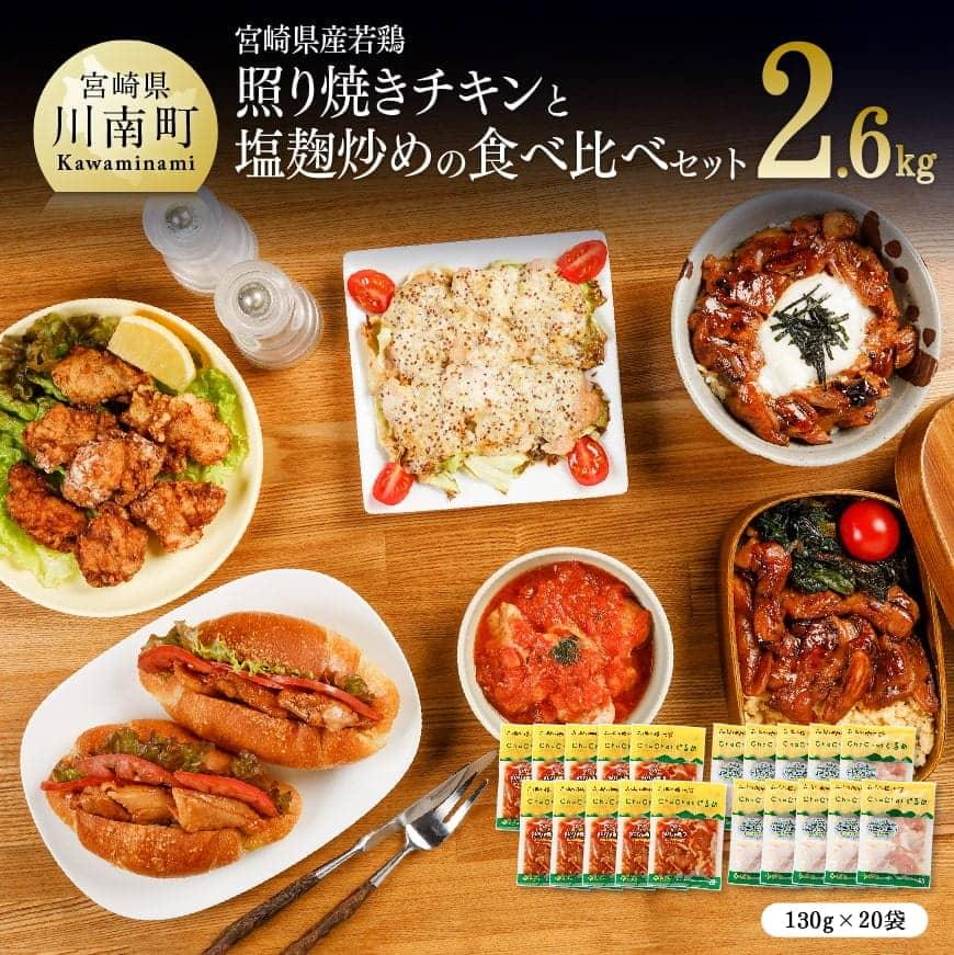 宮崎県産 鶏肉 とり肉 若鶏 チキン 照焼き 塩こうじ 便利 焼くだけ 簡単料理 時短 お弁当 おかず 小分け 国産 ふるさと納税 加工食品 加工品 惣菜 肉 鶏肉 塩麹炒め 照焼きチキン 食べ比べ セット お弁当 おかず 小分け 送料無料 C00710 宮崎県川南町 川南町
