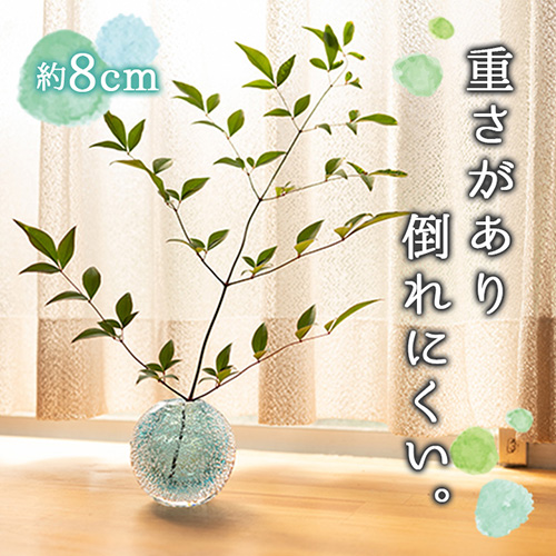 あしたば硝子工房の硝子職人、安本善博さんが1点ずつ吹き硝子で作るトルコフ?ルーの花器をご用意しました。ガラスの中に、富士山麓の空気が細かな気泡となって閉じ込められており、陽の光に当たると気泡がキラキラと光り輝きます。全7色ご用意していますので、お好きなお色をご注文頂けます。全てご注文いただいてから、硝子職人が1点ずつ丁寧にお作りしますので、製作期間に1ヶ月程度お時間を頂戴しております。誕生日の贈り物や結婚のギフトにも喜ばれています。花器は重さがあるので長い枝でも倒れにくく、ペン立てとしてもお使いいただけます。