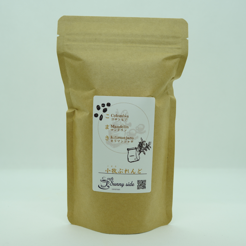 「こまきブレンド」は“こまき”のイニシャルをとり、コロンビア、マンデリン、キリマンジャロをブレンドした、「Sunny side」と小牧市がコラボレーションしたオリジナルブレンド珈琲です。