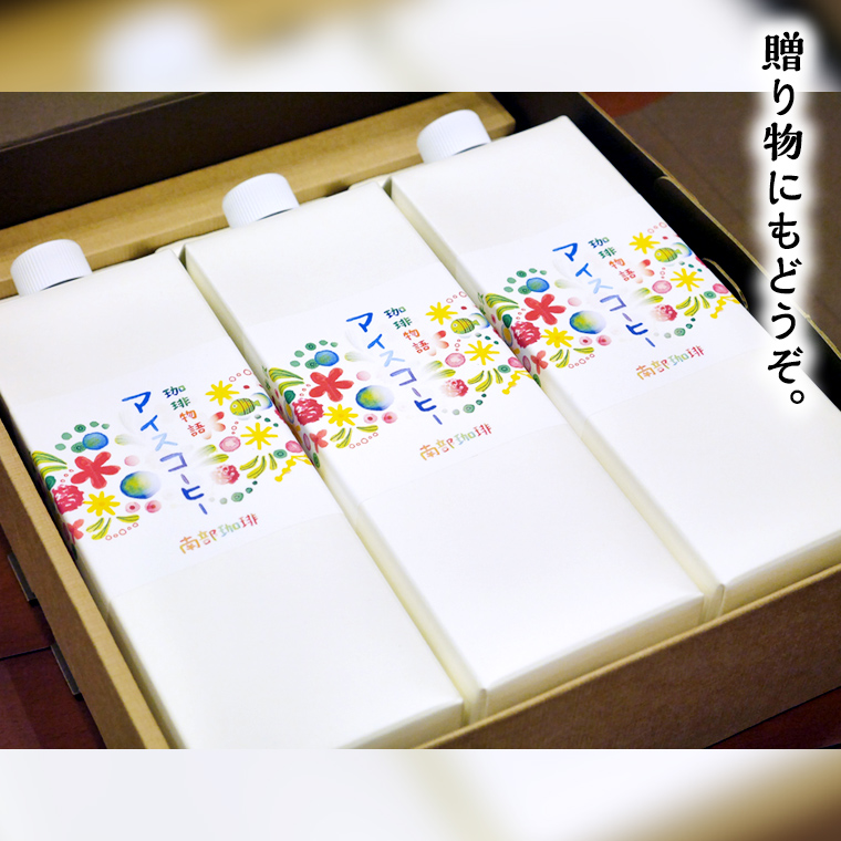 南部珈琲オリジナルアイスコーヒー(1000ml)3本。無糖です。