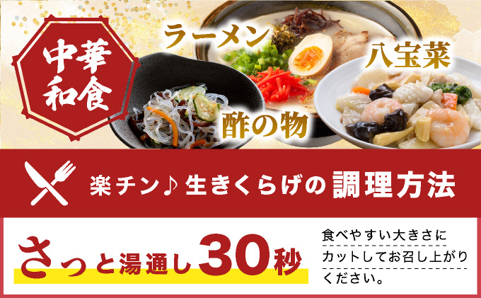 肉厚なきくらげで、乾燥きくらげとはまた違う、みずみずしさと弾力が特徴。
