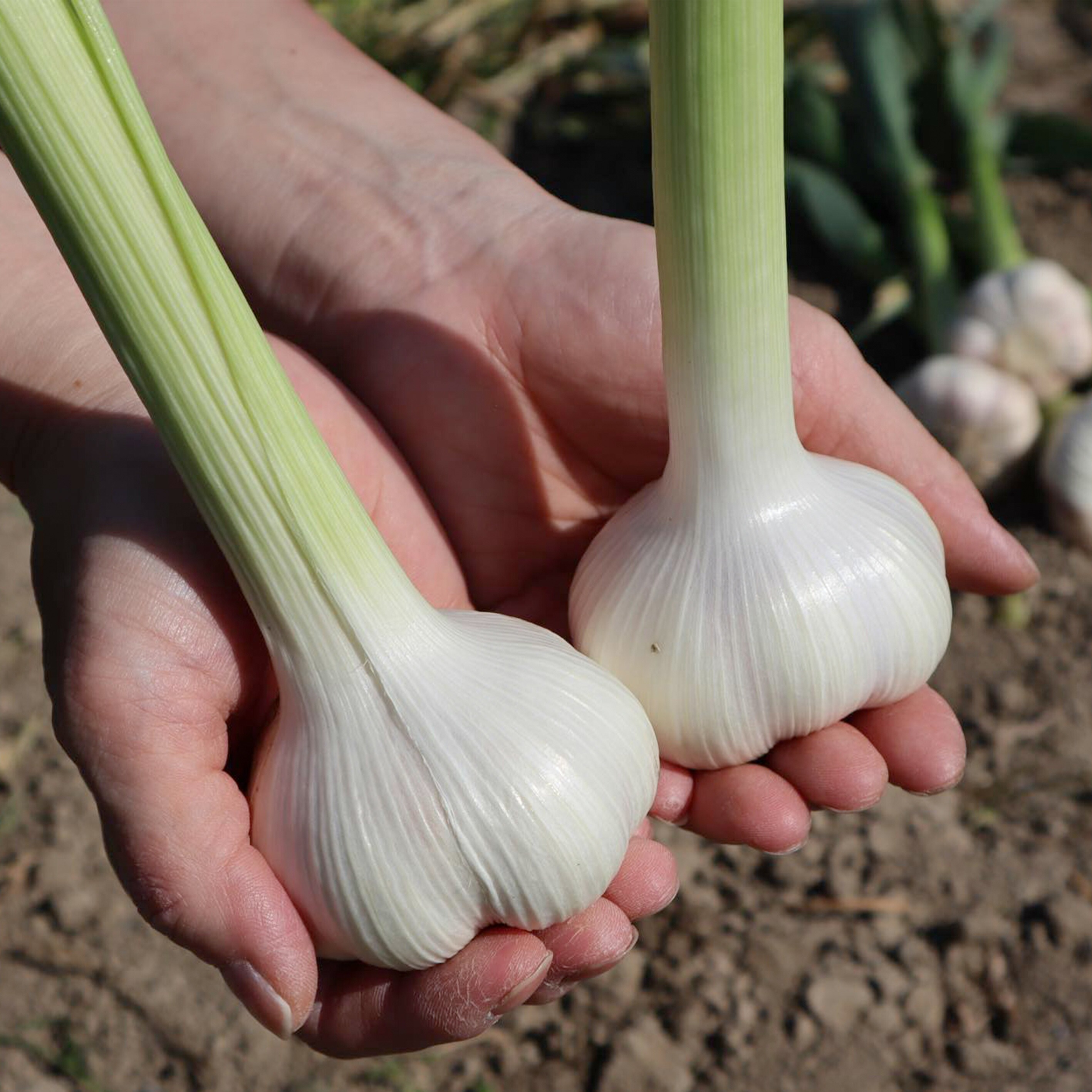 にんにく収穫後、すぐに発送いたします。乾燥したものとはひと味もふた味も違うおいしさで、みずみずしくフレッシュな味わいです。香川県産ならではの肉厚で濃厚味わい。根と茎をカットしてネットに入れてお届けします。長期保存する場合はネットに入れて風通しのよいところに干してください。商品の重量は箱詰め時に計量しておりますが、生もので、収獲時から水分を放出します。お客様へお届けの時点で目減りしていることがありますので予めご了承ください。