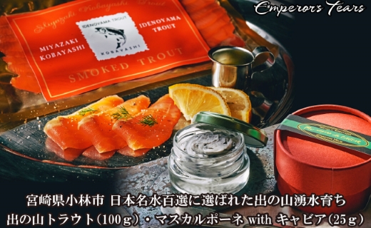 トラウトスモーク100g、キャビア入りマスカルポーネ(25g)