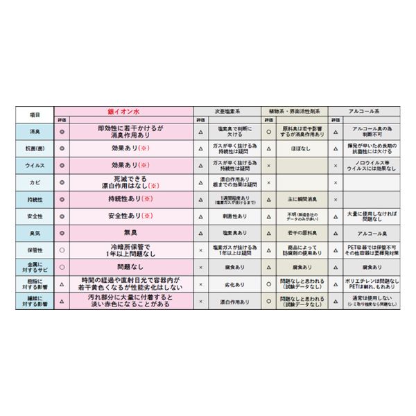 銀イオン水とは純水に銀イオンが溶けた状態の水のこと。