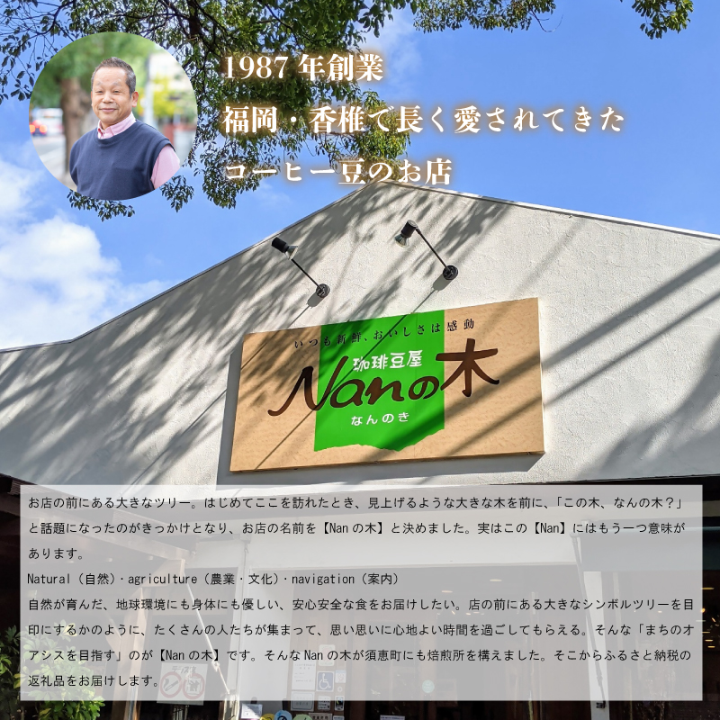 さらに、運命的な出会いもありました。楠並木の美しい香椎宮の参道沿いに、空きの店舗が見つかったのです。「ここなら、スペシャルティコーヒーを紹介するのにぴったりだ!」と即決。これが「Nanの木」の始まりです。