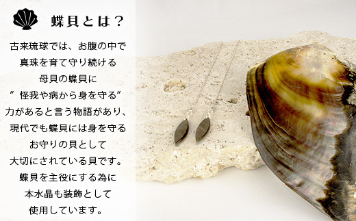 黒蝶貝を主役にする為に本水晶も装飾として使用しています。