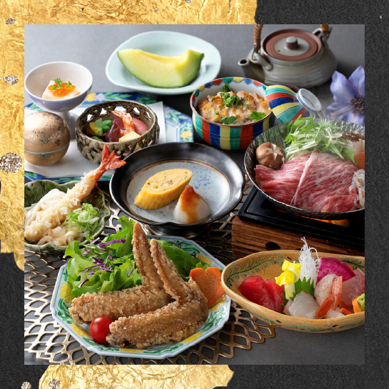 小牧発祥の名古屋コーチンと飛騨牛を使用した会席料理です。