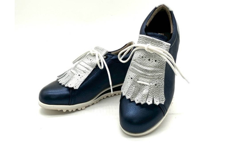 ゴルフシューズといえば普段にも履けるスニーカータイプが主流になりつつありますが、シンプルなスニーカータイプに天然皮革を材料としたメダリオン仕様の砂除けキルトを付けることで高級感のあるクラシカルなデザインにイメージチェンジすることができます。