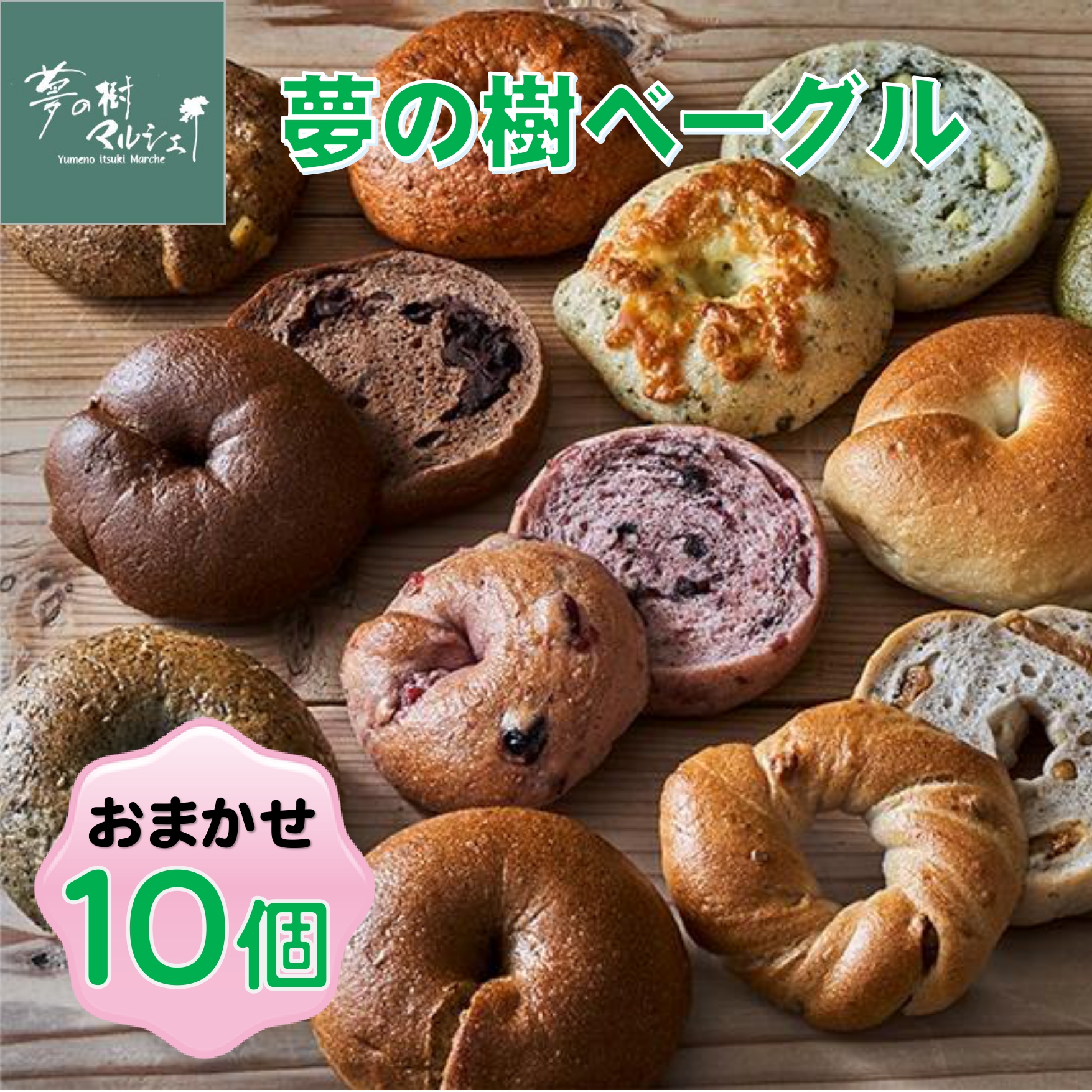 おかし工房木村屋の2号店「夢の樹マルシェ」の人気のベーグル10種類の詰め合わせです。全て陸前高田のブランド米「たかたのゆめ」の米粉を配合しています。米粉が混ざっていることで、普通のベーグルよりも生地が潰れやすいため、茹でずにたくさんの蒸気を当てて焼き上げます。お米の甘みと独特のモッチリ感、トーストしたときのサックサクな食感が特徴の美味しいベーグルです。11種類+季節限定の中から選定してお届けいたします。専用の箱にお入れてお届けいたしますので、贈り物としてもおすすめです。