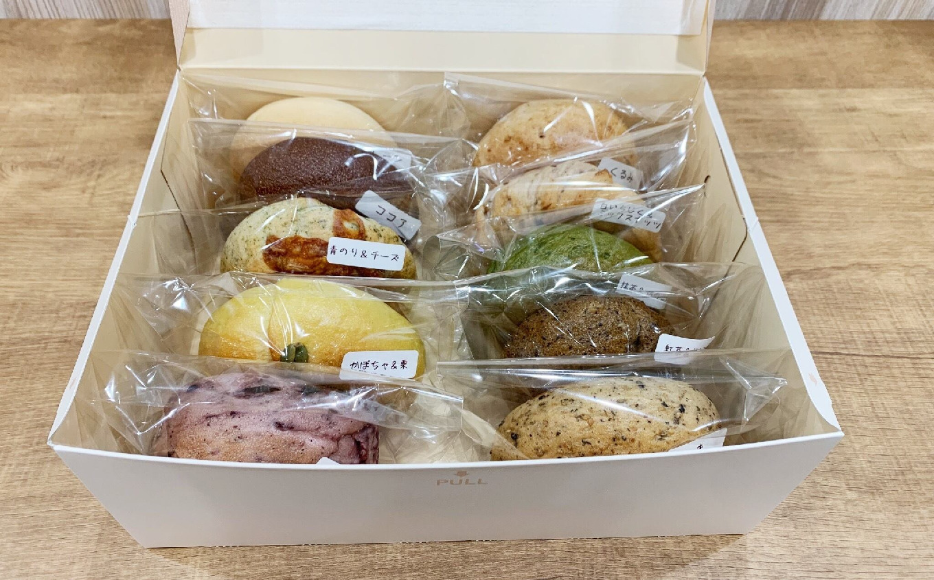 プレーン・ココア・ベリー&ベリー・白いちじく&ミックスナッツ・かぼちゃ&栗・抹茶&かのこ豆・コーヒー&キャラメルチョコ・青のり&チーズ・ごま・くるみ・紅茶&りんご
