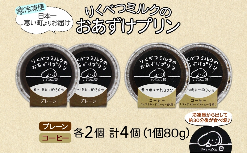 北海道・陸別町から「りくべつミルクのおあずけプリン2種 プレーン&コーヒー 計4個」をお届けします。