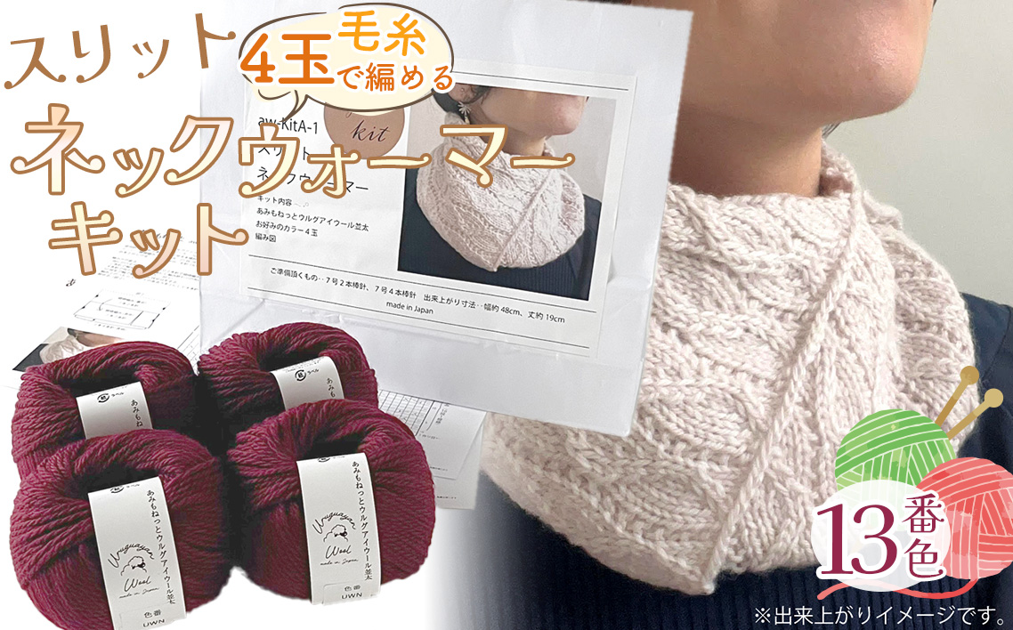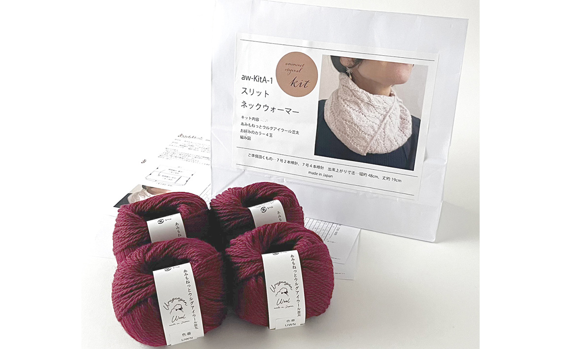 #検索キーワード : 編み物キット ネックウォーマー 手編み 毛糸 ウール100% 並太毛糸 スリットデザイン 冬小物 首元アイテム ハンドメイド 趣味 手作り 編み図付き 愛知県