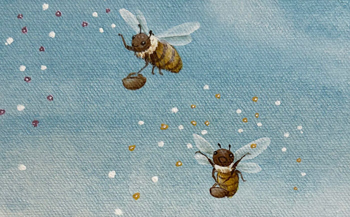 夫婦二人で営む工房で、妻はこびとや妖精をモチーフにしたアクリル画や立体オブジェ等の製作を行っています。