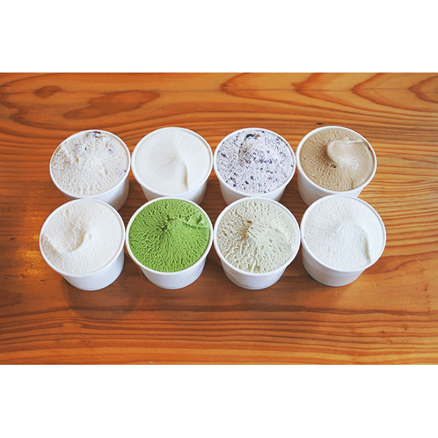 ※ミルク、クリームチーズ、チョコチップ、ラムレーズン、まっ茶、黒豆、やしろの桃、ピスタチオ、ストロベリー、その他季節のジェラートなどから8種をお届けします。種類はお選びいただけません。
