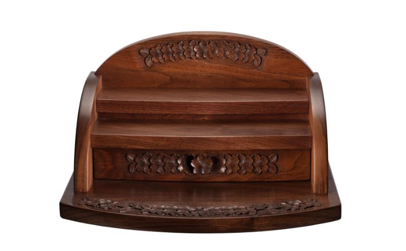 一彫堂のお仏壇は家具職人が無垢の木を使用しお仏壇を製作し、その後お仏壇を部材に分けて彫刻師が桜の彫刻をいたします。