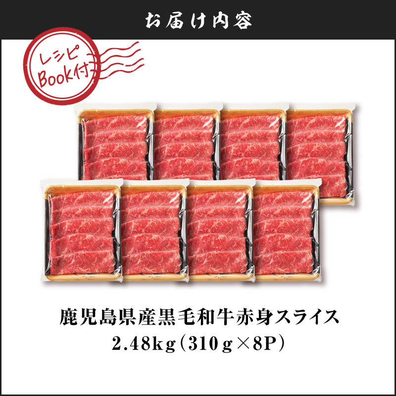 鹿児島県産黒毛和牛赤身スライス 2.48kg(310g×8P)