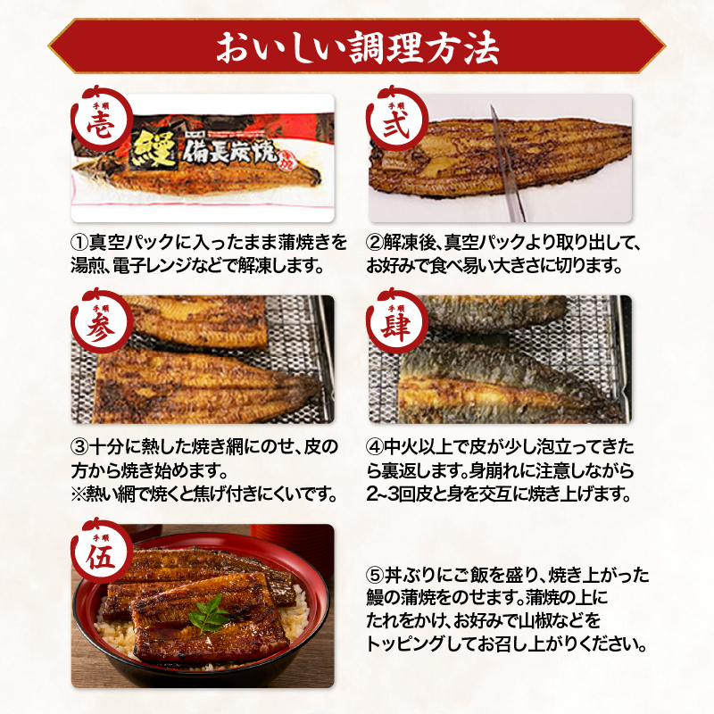 ※加工時には下処理をおこなっておりますが、すべての小骨を取り除くのは難しく、肉厚で大きいうなぎの中には、小骨が残っている場合がございます。
