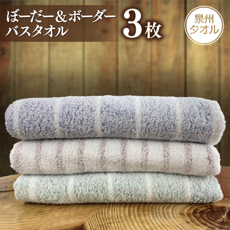 目指したのはやさしい肌触りと使いやすさ。肌に触れる表面に甘撚り糸を使用することで、ふんわりとした優しい風合いに仕上げました。どんなときでも使いやすいシンプルなボーダーを採用しながら、「泉州透かし織」で織り上げていますので、白いパイル糸越しのほのかな色彩をお楽しみいただけます。