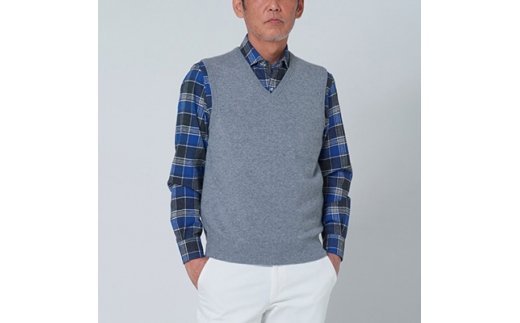 日本製 カシミヤ100% Vベスト ライトグレー Lサイズ(身幅52cm 身丈64.5cm) 1着