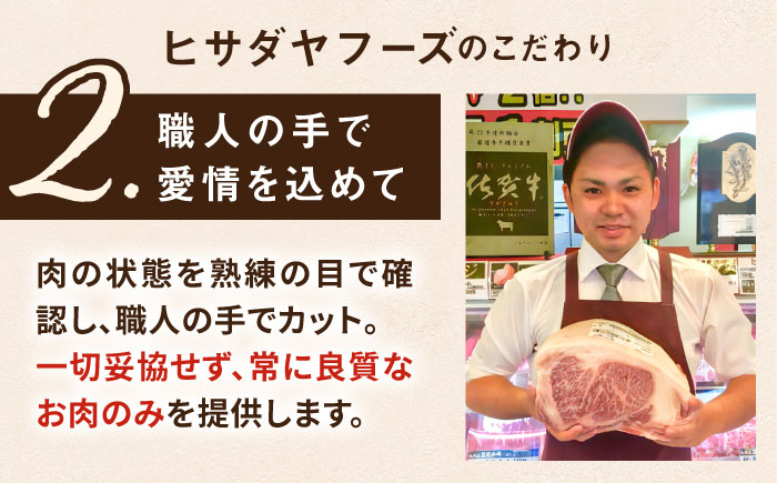 (2)職人自らお肉の状態を確認し、カットを行います。