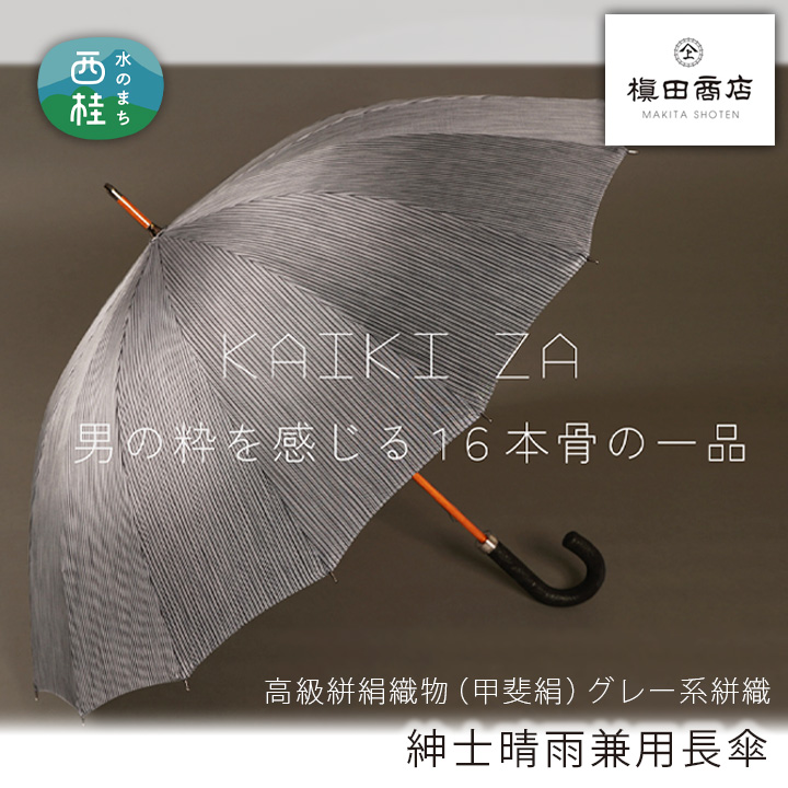 No.448 高級絣絹織物(甲斐絹)【紳士晴雨兼用長傘】グレー系絣織-[n0448_mak_A]